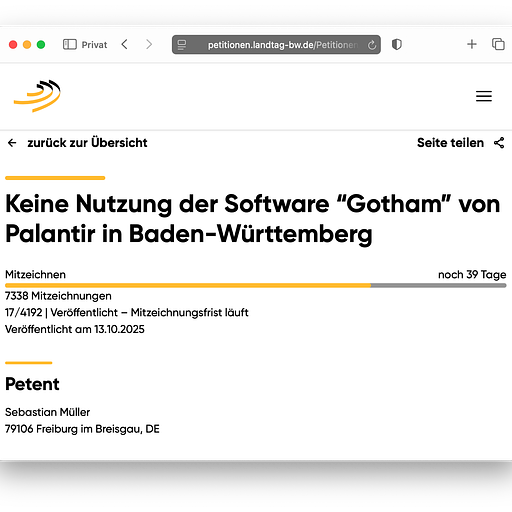 Grosser Andrang bei Petition gegen Palantir führt zu Defekt der Petitionsplattform des Landtags Baden-Württemberg