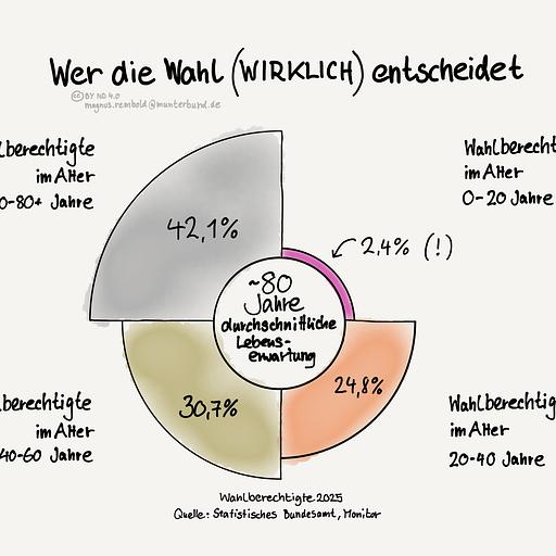 Wer die Wahl (WIRKLICH) entscheidet 2025Sa. 18. Januar 2025RepräsentationWahlenGenerationengerechtigkeitBundestagRepräsentativität ist ein wichtiges Gut für die parlamentarische Demokratie.